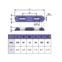 ANODE HULL 2.4KG 318X67X34MM