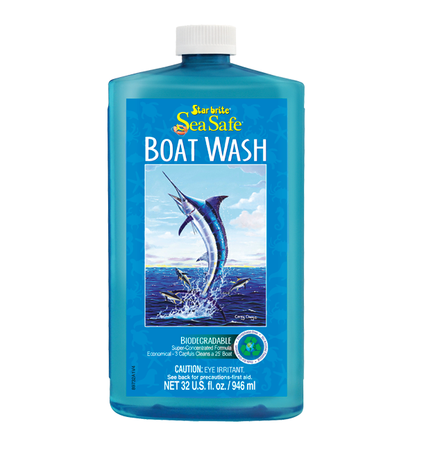 Sea Safe Boat Wash is an environmentally-responsible boat cleaning product that really works. The low-sudsing, biodegradable formula is concentrated for maximum cleaning power and maximum economy. It is Lake Safe, so it can be used while the boat is in or near the water. It cleans all marine surfaces, including fiberglass, vinyl, plastic, rubber, glass, metal and painted areas.