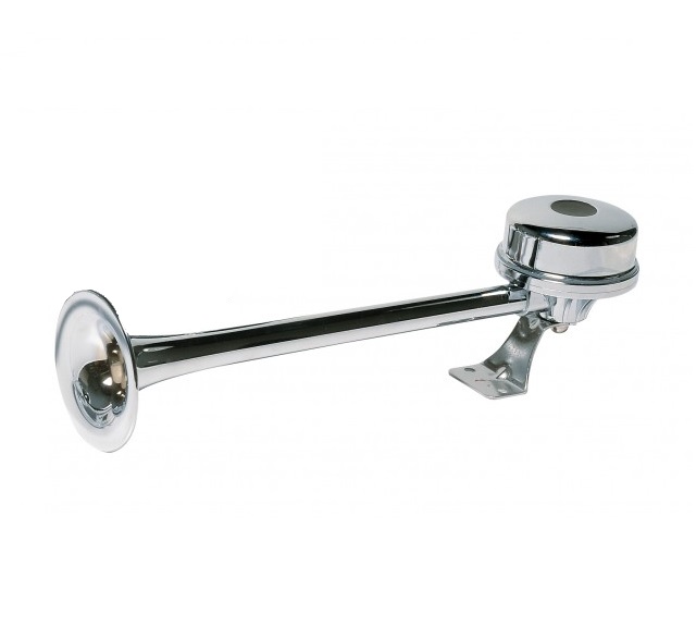Deluxe 12/24v Electric Single Trumpet horn with an elegant shape. Horn made of chromium plated brass, mounting bracket and top cover are stainless steel, mec...