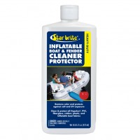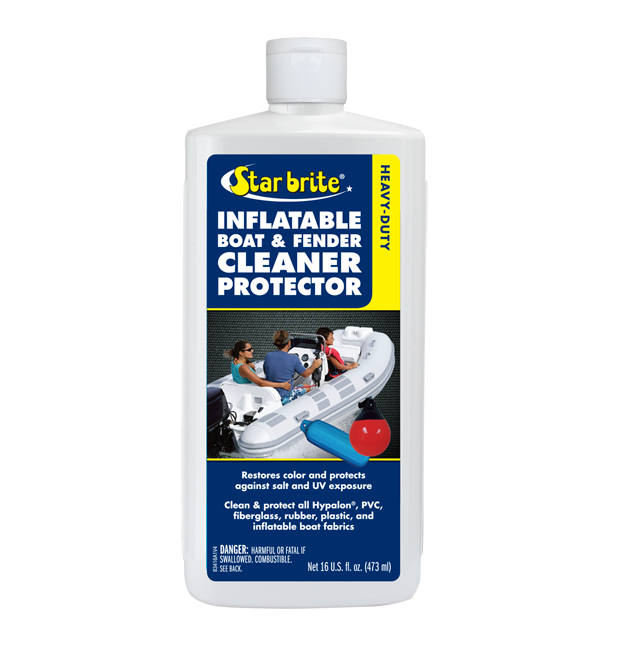 Wash surface to remove dust and loose dirt then dry thoroughly. Shake bottle well. Using a clean, dry cloth apply Star brite Inflatable Boat & Fender Cleaner/ Protector to a small area at a time. Rub briskly in even overlapping circular motion to ensure uniform cleaning. Allow application to dry to a haze. Using another clean, dry cloth, remove haze and buff to a clean lustrous finish. NOTE: For heavily stained or severely oxidized surfaces use a stiff bristle brush(40027) or fine scouring pad (40129) for application.