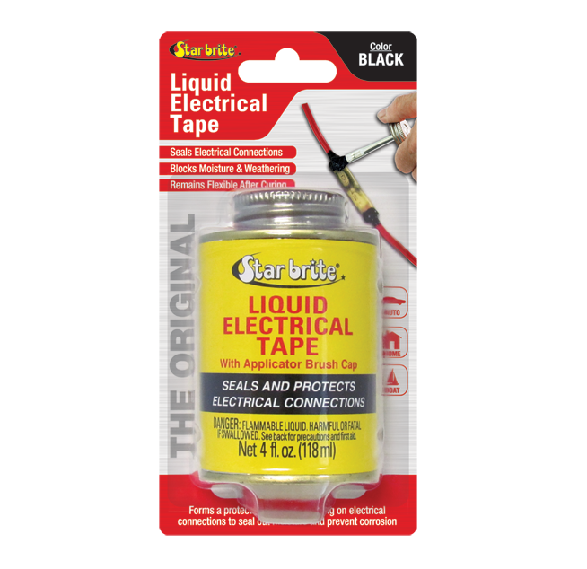 Stir well before using. Wires or terminal to be sealed must be clean and dry. Brush or dip Star brite" Liquid Electrical Tape on electrical connection area. Allow to dry for 5 minutes and apply second coat if greater thickness of seal is needed. Succeeding coats may be applied at 5 minute intervals to build up extremely thick protection. Product fully cures in 24 hours.