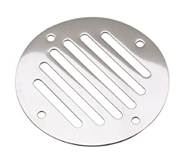 Polished stainless steel drain cover can be used for floor drains, vents, or hidden horn openings. Four holes for #6 screws Product Code : 66308-1