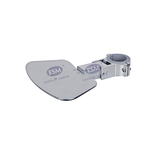 FOLDABLE FOOTREST WITH ALUMUNIUM STEP;FITS 87MM O.D. PIPE; POLISHED & BRIGHT ANODIZED A product of Eastsun Marine Product Code : 188587-AL